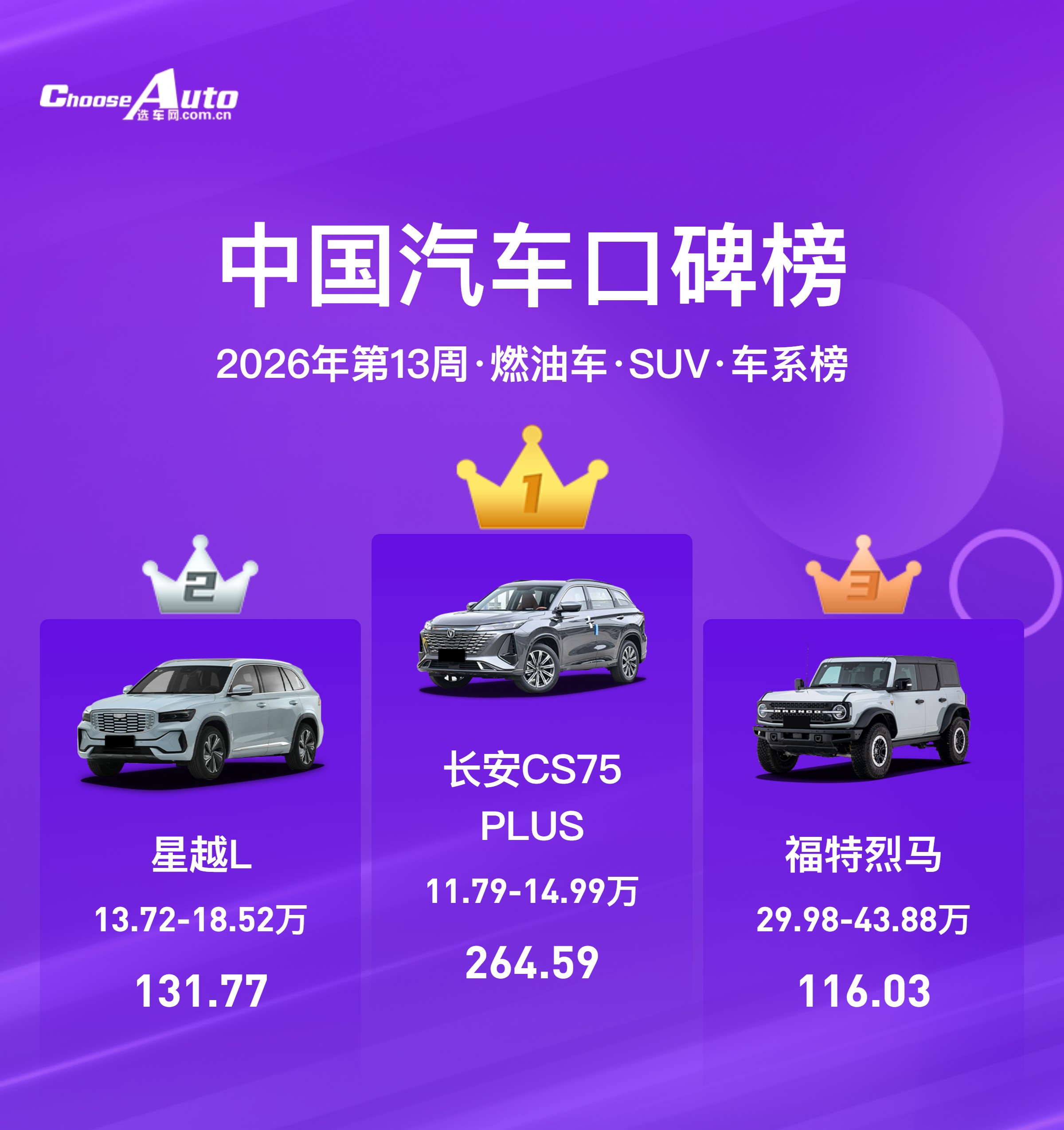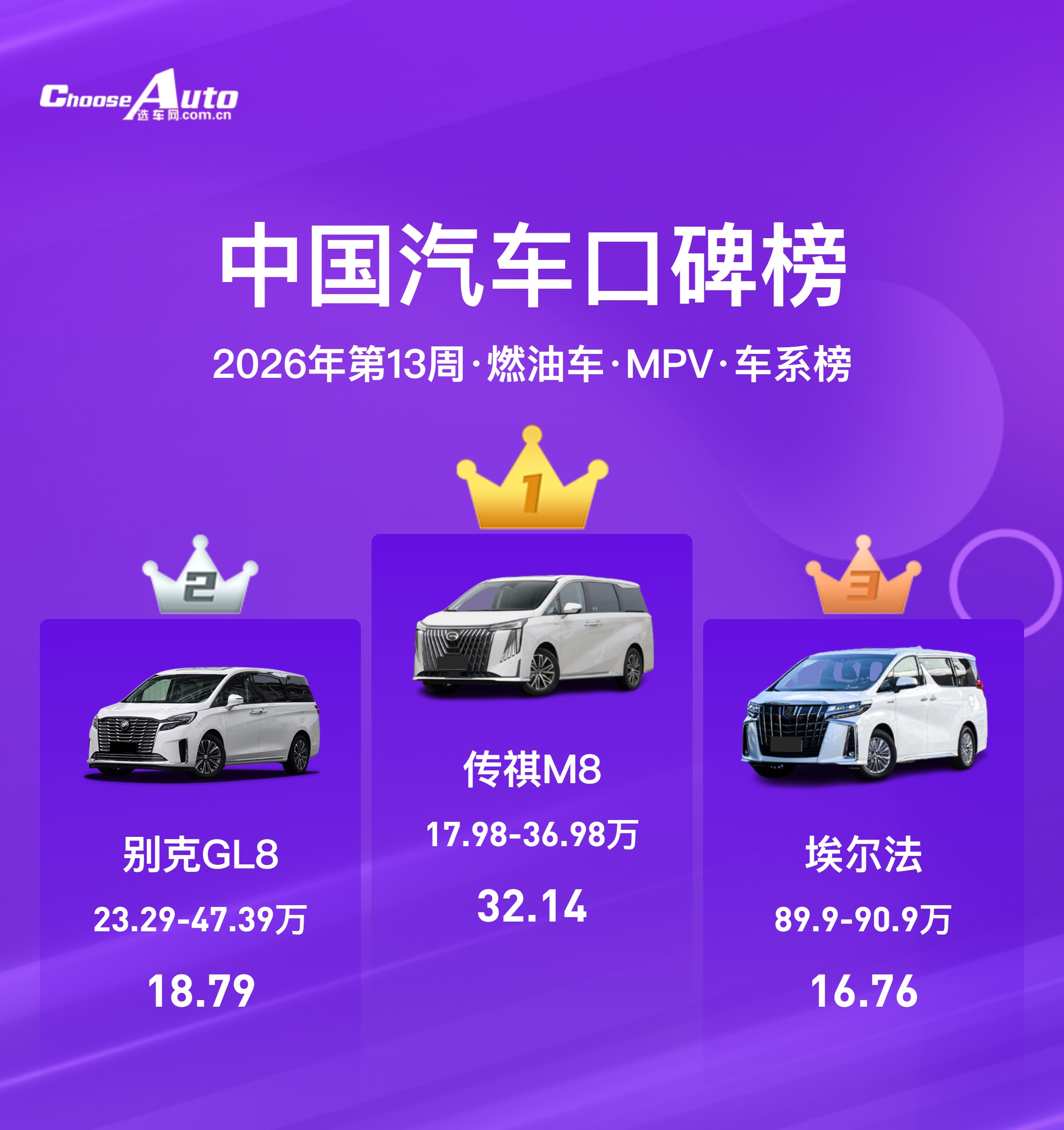 在新能源浪潮席卷车市的当下,燃油车依然凭借成熟的技术、可靠的续航和广泛的补能网络,占据着大量消费者的购车清单。选车网最新发布的 2026 年第 13 周燃油车口碑榜,从轿车、SUV、MPV三大细分市场出发,用真实口碑数据勾勒出当前消费者心中的 “燃油车优选图谱”。这份榜单没有华丽的营销话术,只有实打实的用户评价,或许能为正在选车的你提供一份冷静而客观的参考。