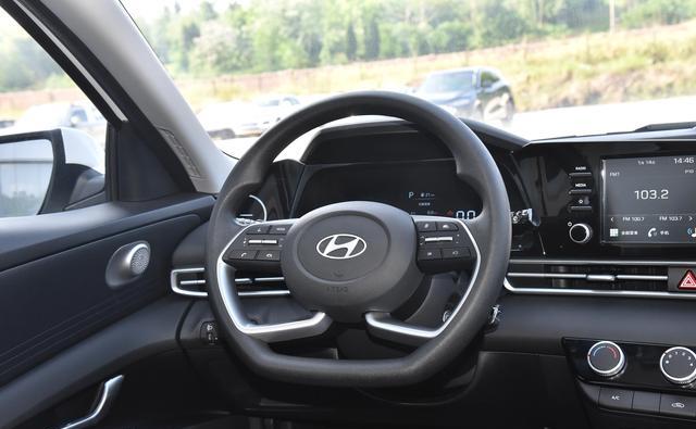 内饰部分,整个中控台的设计中规中矩,毕竟是四年前的产品了,无论是整体的布局,还是车机配置,都比较常规,在黑色主色调的烘托下,甚至显得有些老气。而在配置上,现代伊兰特全系标配6气囊、定速巡航、倒车影像,部分车型还有L2级驾驶辅助系统、车道偏离预警、前方碰撞预警、主动刹车、车道保持辅助、车道居中保持、疲劳提醒、道路交通标识识别、全速自适应巡航等配置,作为一台不足6万顶配才10万多的轿车,这样的配置并不算差。
