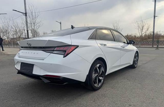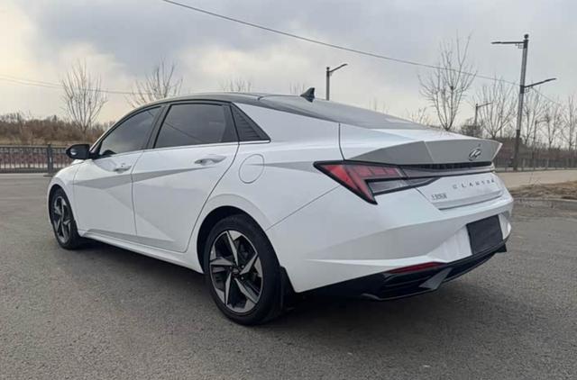 基于油车的价值体系来看,现代伊兰特仍旧是一款比较值得入手的车型,首先是颜值,别看这台车已经是四五年前的产品了,但是它的外观设计确实很前卫时尚,尤其是车头,相比较卡罗拉、朗逸来说,更加扁平,重心更低,包括进气格栅的设计也很有特点,熏黑处理的中网加上两侧犀利的LED大灯,展现出比较吸睛的一面。尾灯是当下比较主流的贯穿式设计,下方还有宽大的黑色外包围,层次感鲜明。